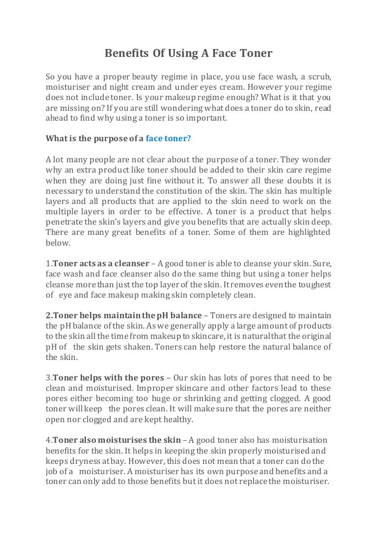 Benefits Of Using Toner Benefits Of Using Toner - The benefit is that, when used correctly, it can help remove excess oils and dead.