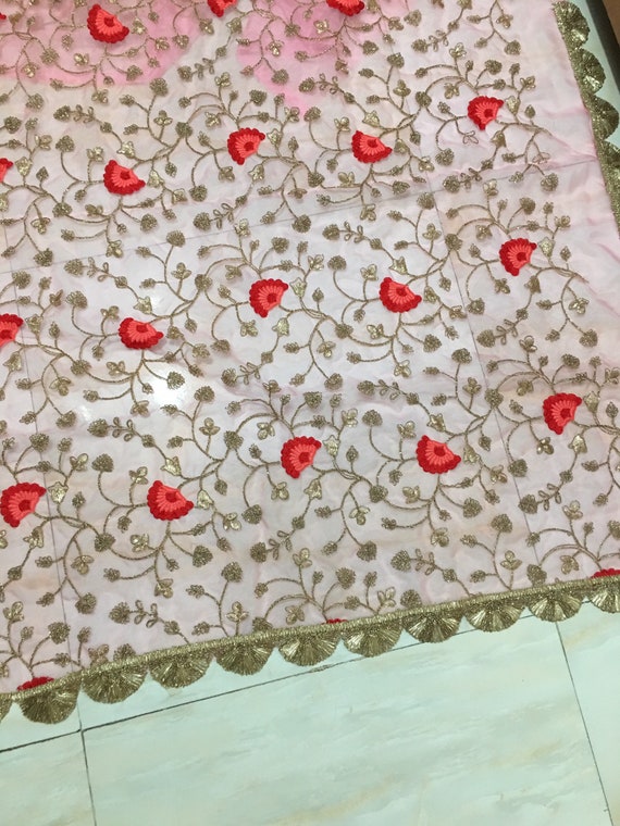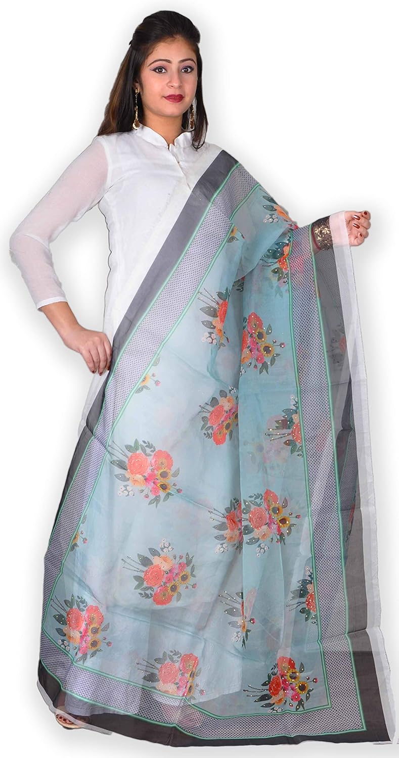 Organza Floral Dupatta Organza Floral Dupatta - Dupatta chunni scarf organza gota flower stole hijab party wear neck head wrap.
