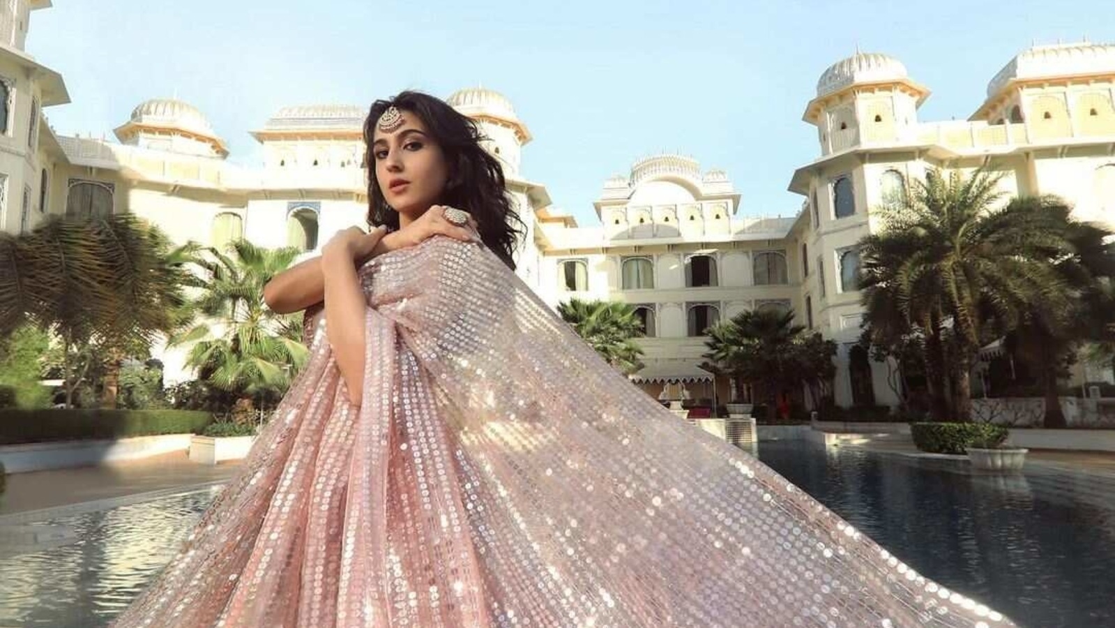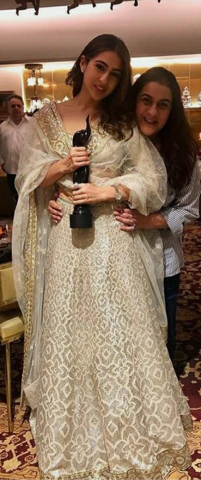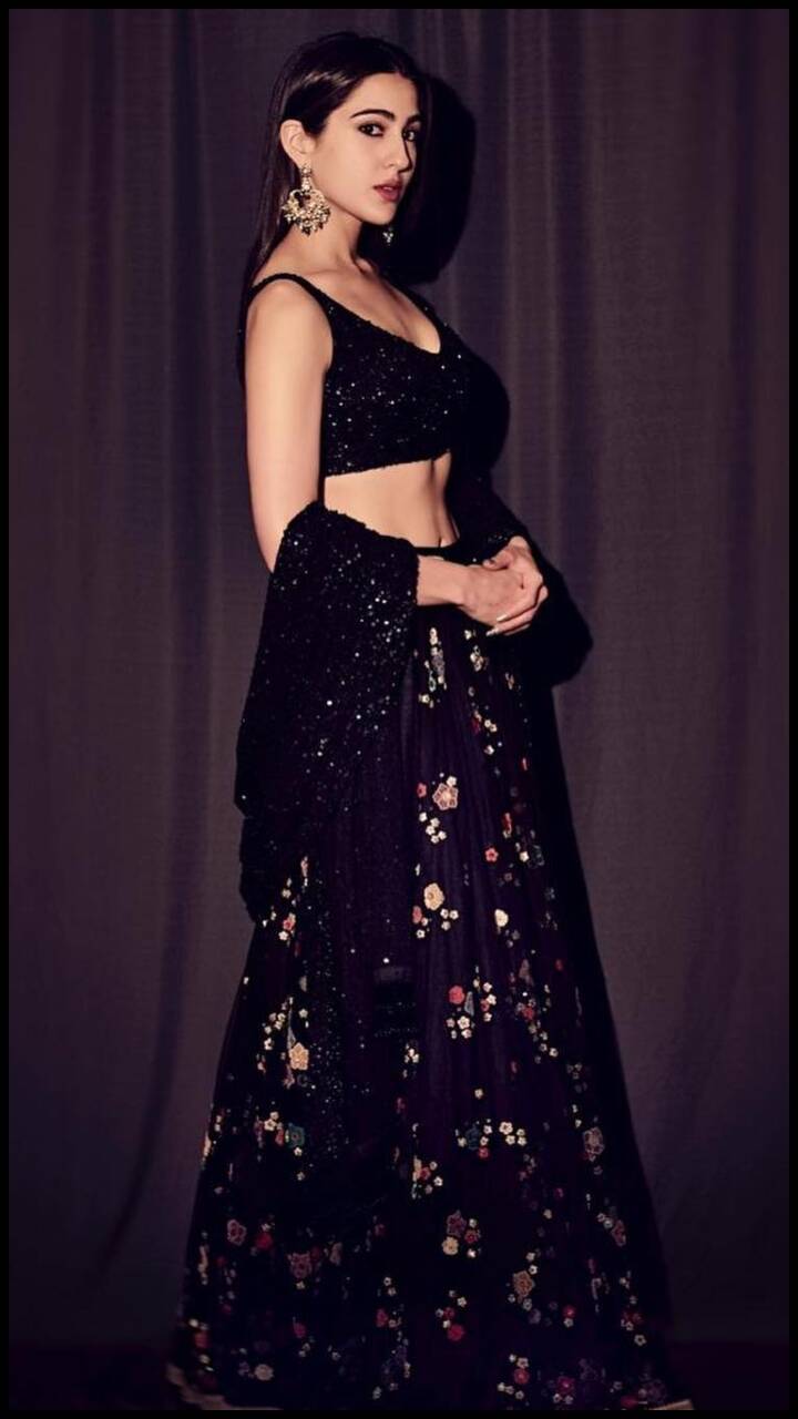 Sara Ali Khan Lehenga Sara Ali Khan Lehenga : She kept her look simple with a pair of chand balis and center parted sleek hair!